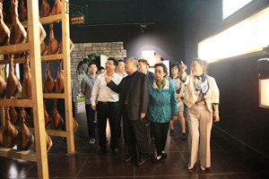 6月28日下午,省人大常委會副主任馮明一行在金華市人大常委會副主任陳志身等的陪同下,參觀考察了建于金字火腿內(nèi)的中國火腿博覽館和世界火腿博覽館,了解金華火腿的行業(yè)發(fā)展現(xiàn)狀。 金字火腿總經(jīng)理吳月肖向馮明一行介紹了金華火腿的歷史文化、傳統(tǒng)制作工藝、營養(yǎng)價值和儲存食用方法。馮明指出,金華火腿雖然是一個傳統(tǒng)行業(yè),但也要跟上形勢,通過各種渠道進行推廣傳播,她特別強調(diào)了互聯(lián)網(wǎng)營銷在當(dāng)代企業(yè)發(fā)展中的作用,十分關(guān)心企業(yè)在這一方面的發(fā)展……
